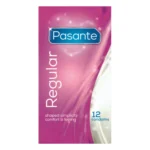 Regular är Pasantes standardkondom med anatomisk form för perfekt passform. Pasante Regular är ett bra alternativ som i England är precis lika vanlig som Profil är i Sverige. Den är glidmedelsbehandlad och något utsvängd behållare. Tjocklek 0,06 mm. Kondomen passar allra bäst på dig som har omkrets 11-12 cm på penis.