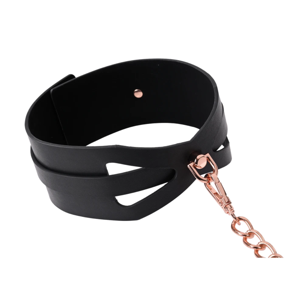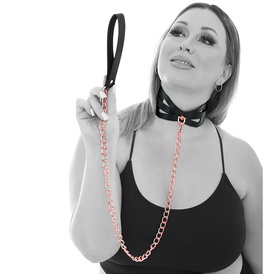 Visa dem hur roligt det är att inte göra som man blir tillsagd med Brat Collar & Leash. Med korsettliknande utskärningar och en elegant roséguldkedja kanske du bara säger ”snälla”. Det enkla klämman gör det möjligt att snabbt lossa kedjan och halsbandet för passionerade positionsbyten.