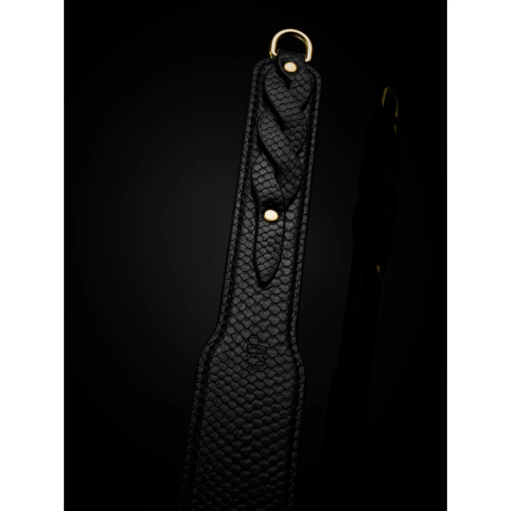 Phantom Braided Paddle kombinerar raffinerad estetik och funktionell design för att leverera ett mångsidigt och snyggt verktyg för impact-lek. Med sitt texturerade flätade handtag och eleganta veganska läderyta erbjuder denna paddel både ett säkert grepp och en smidig, flexibel impact-zon – vilket ger användarna exakt kontroll och en rad sensationer från mjuka klappar till skarpare slag.
