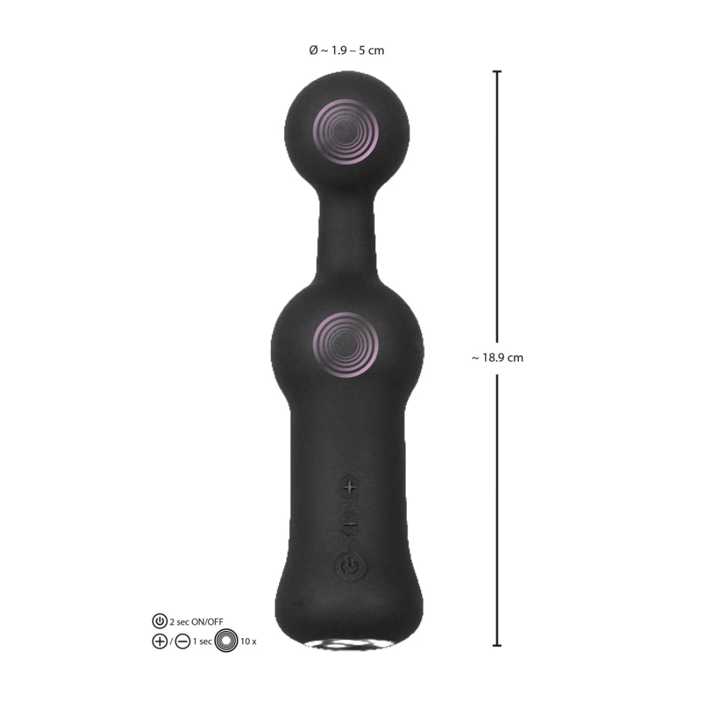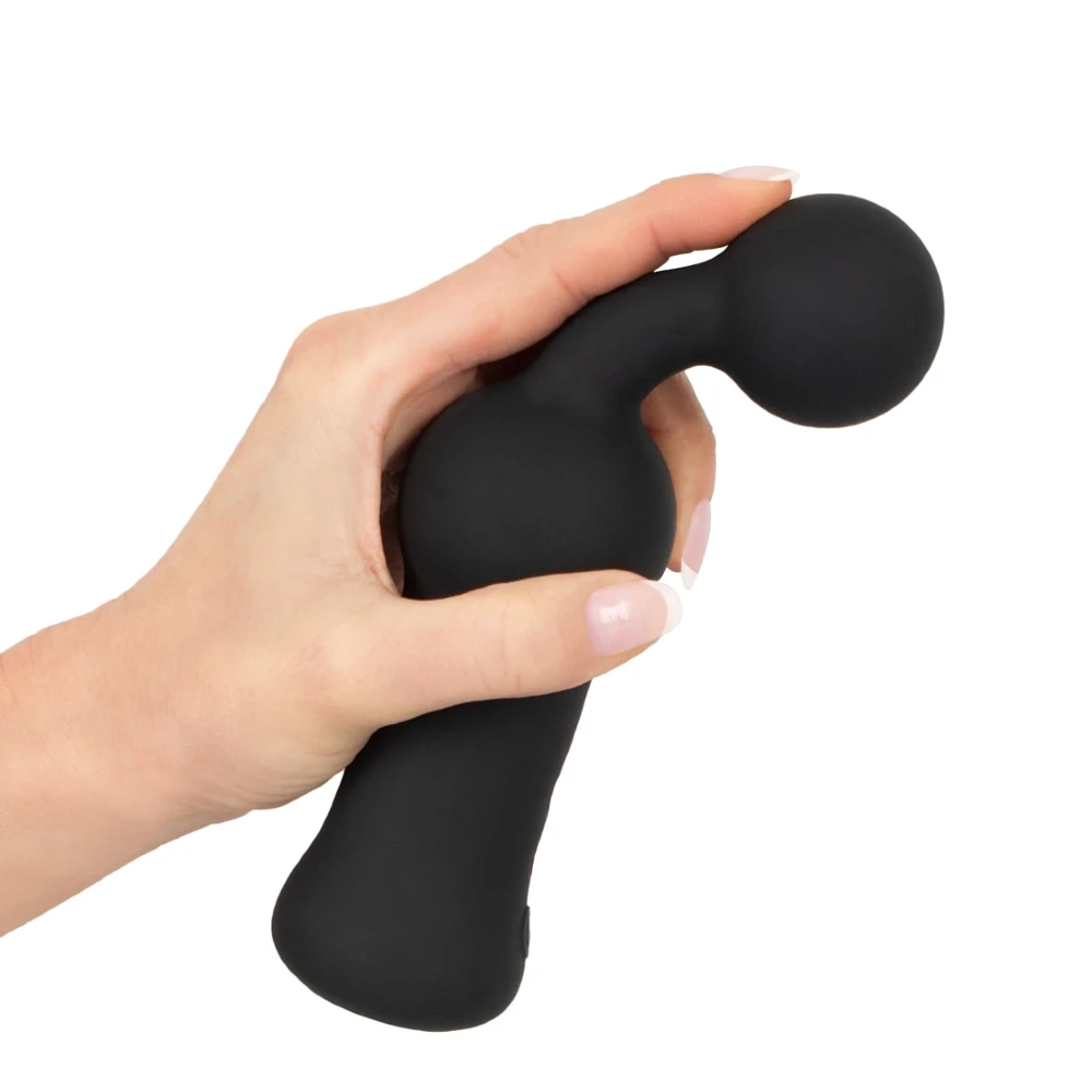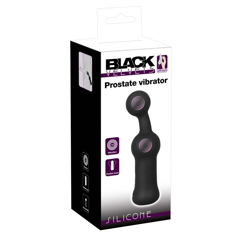 Perfekt formad prostatavibrator från Black Velvets med lätt böjd, flexibel kula i toppen som skämmer bort prostatan och anus med vibrationer. 10 vibrationsmodus ger spännande variation och styrs separat via knapptryck direkt på vibratorn. Av ett sammetslent Soft Touch material som ger en skön känsla på huden.