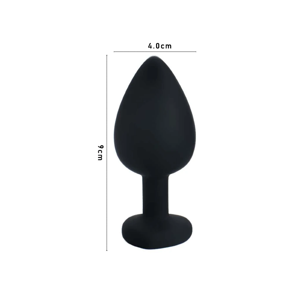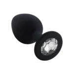Stor analplugg i silikon med rund botten och vit glittrande sten.