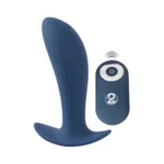 Sammetslen analplugg med ankarbas och lätt böjt skaft. Med 10 vibrationsmodus som styrs bekvämt med fjärrkontroll eller via knapptryck. Laddas upp med medföljande USB-kabel.
