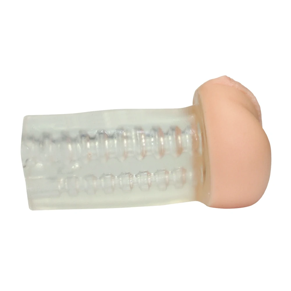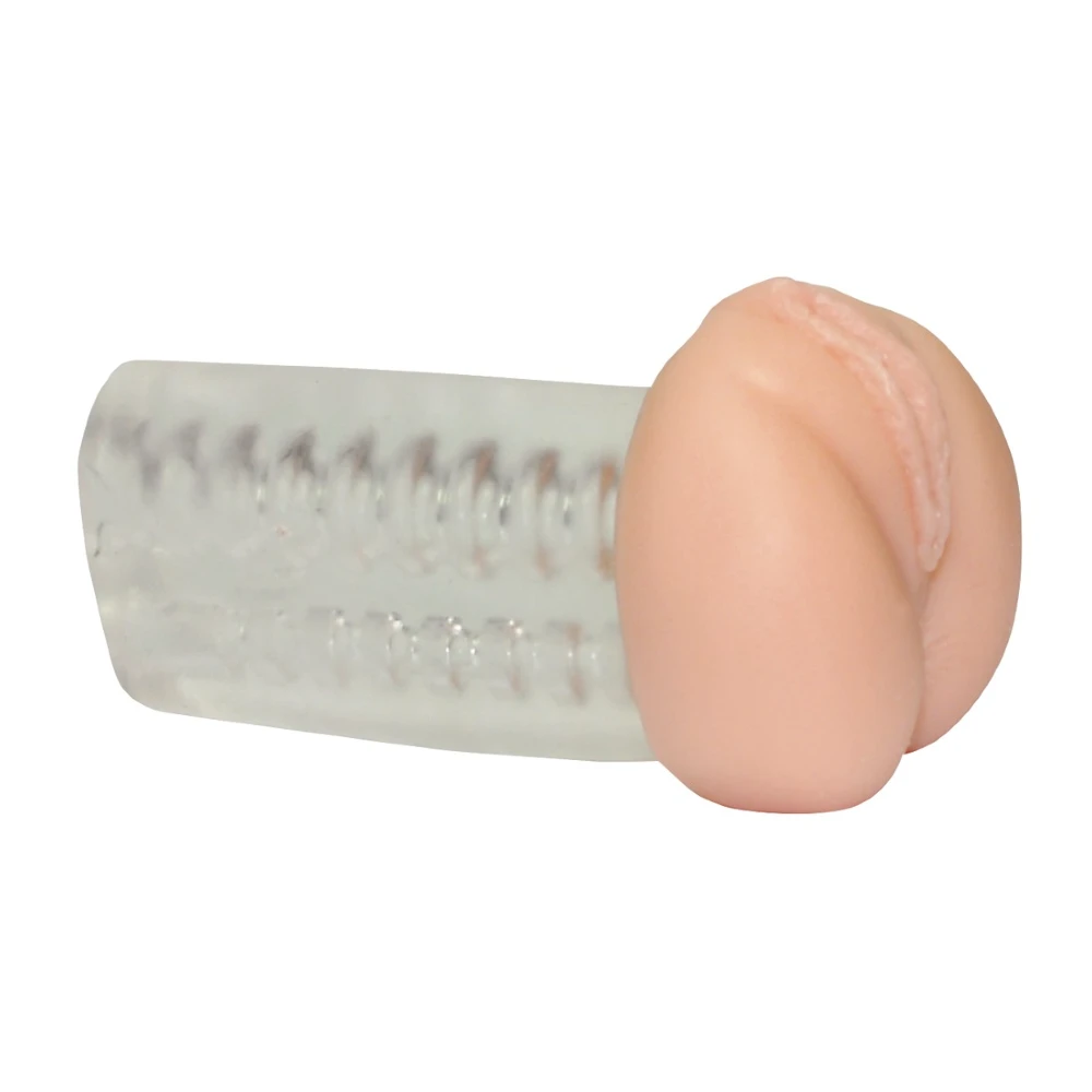 Hudfärgad vagina/anus-masturbator i naturtrogen design med stimulerande räfflor och töjbara lustkanaler.