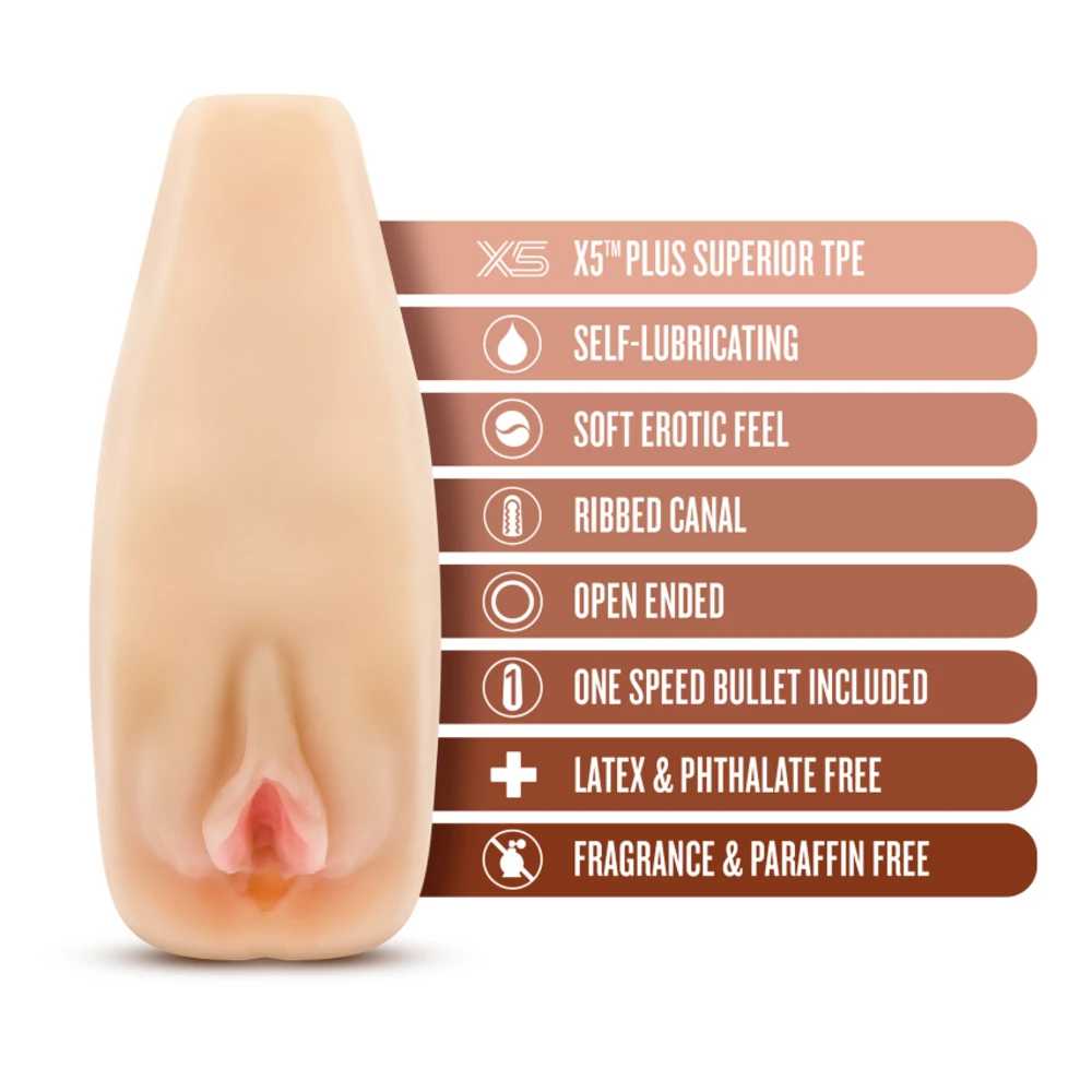 Tillsätt lite vatten eller saliv och njut av mina självsmörjande förmågor när jag passar dig som handen i handsken. Jag ger en mängd olika sensationer med min räfflade kanal och är öppen för enkel rengöring. Jag levereras också med en 1-växlad kula för kraftfulla vibrationer under lek. Tillverkad av ultramjuk X5™ Plus, fri från ftalater, paraffiner, latex, och jag ser ut och känns bättre än den äkta varan.