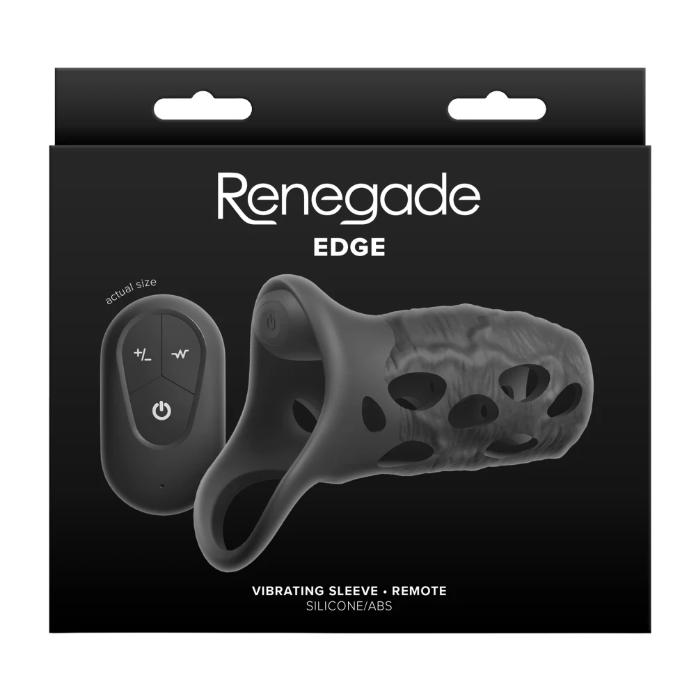 Edge är en vibrerande penishylsa med en tajt pungring och fjärrkontroll för handsfree-lek. Den är tillverkad av kroppssäker silikon och erbjuder flera hastigheter och funktioner med tre intensitetsnivåer.